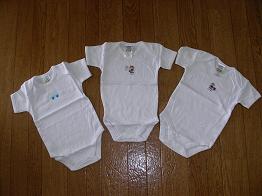 先日注文したSILKYMAXさんのボディシャツが届きました!これ↓あまりの破格値だったので、生地がうすいかなーと不安だったのですが・・・届いたものはすっごく厚手で伸縮性あり(^◇^) またのところの縫製も丈夫!!!胸元のデザインも海外っぽくてかわいかったです(*^_^*)この前、子供服の”西○屋”で買ったボディシャツは1回の洗濯でやばいくらい伸びてしまいました。。。(ーー;)うちの洗濯機はドラム式なので子供服は薄いとすぐ伸びます。このSILKMAXさんのシャツは1回洗ったけどびくともせず、ホントしっかりしてました。値段的に、半ば諦めてただけに(←失礼かしら)すごく嬉しい(^^ゞサイズも6~12ヶ月と曖昧な幅広さがありがたい。お勧めです。。。送料もメール便だと210円でした。ちなみに今宅急便でコンビの長袖ボディシャツが届きました。あり得ないくらい薄くてペラペラでした、がっかり。。。コンビのほうがはるかに高かったのにね・・・((+_+))クスンSILKYMAXさん他にもお得なものありました↓色んなボディシャツありますよ~