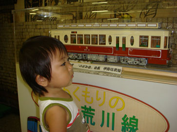 月曜日にプールに入ろうと、あらかわ遊園にふたたび行ってきました。しかし、プールの入り口で、Kcが頑なに拒否そこで、遊園地のほうに行ってみました。遊園地のほうに入るのは、はじめてです。Kcはまだ、乗り物が怖くて楽しめないので、園内をお散歩。しかし暑かった!!荒川線の車両が置いてありました。土日は車内にも入れるようです。園内をひと回りして、お弁当を食べてから、水上バスの発着場に行ってみました。遊園地の裏手は、すぐ荒川です。家のすぐ近くに荒川が流れていて、やはり水上バスの発着場があるんですが、料金を見たら3,000円でしたw水上バスも運行は土日のみだそうです。行きはバスだったので、都電で帰ろうと思ったら、超満員。結局、バスで帰ってきたんですが、気がついたら池袋まで連れて行かれました。。。はじめて乗るバス停で、必ず失敗するのはなぜ??いつも逃げ道のある致命的な失敗ではないのですが