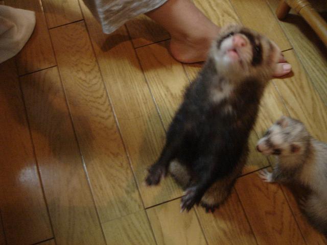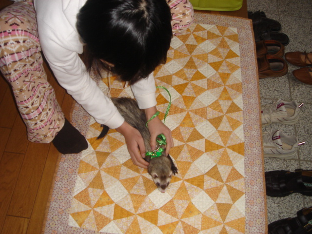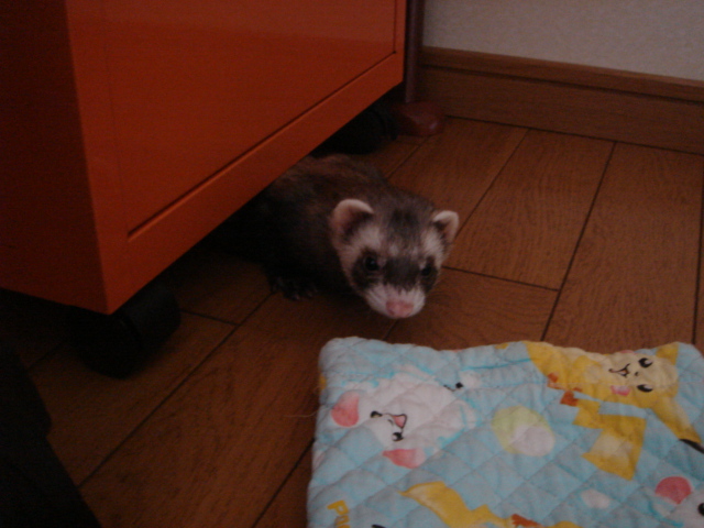こんばんは。 miiです。 すっかり自分の使命を忘れてる、naa ですが、 どうも、ずっと延期になってる、バイキング給食が気になって、 気も そぞろのようです。 明日、ようやく念願のバイキング給食が 行なわれることになりましたので、 その後に、期待いたしましょう。 以上、ご報告いたします。また、インフルエンザが流行り始めましたね。近くの学校では、1,2,4年が揃って、学級閉鎖だとか。我が学校でも、ノロウイルスはどうやら収束に向かい、じわじわインフルエンザの気配が。。。卒業式も近いことですし、また大事にならないことを祈ります。~~~~~~~~~~~~~~~~~~~~~~~~~~~~~~~~~~~~~~~~~そうそう。インフルエンザはフェレットにもうつるんですから。なんとしても、持ち込まないで貰わなきゃ!!!ね、ククちゃん「じーーーーーーーーーーーーーーー」ははは。いつだって、ぴょ~んと 出てくるわけないんですけどね。じゃあ、これで、どうだ!!と、お気に入りの、naa のかつても草履袋で、おびき寄せると、華麗な、ジャンプで、食いついてきましたまさに、呼ばれて飛び出て、じゃじゃじゃじゃ~~んあまりにびっくりして、私ブレブレになっちゃってます。ブログランキングに参加してます!! 日々の励みに、応援ポチッと ありがとうございます♪