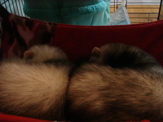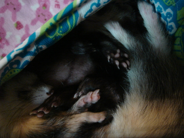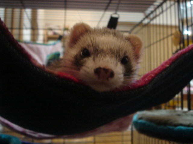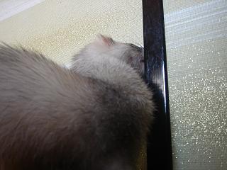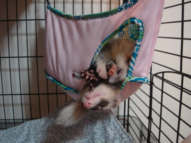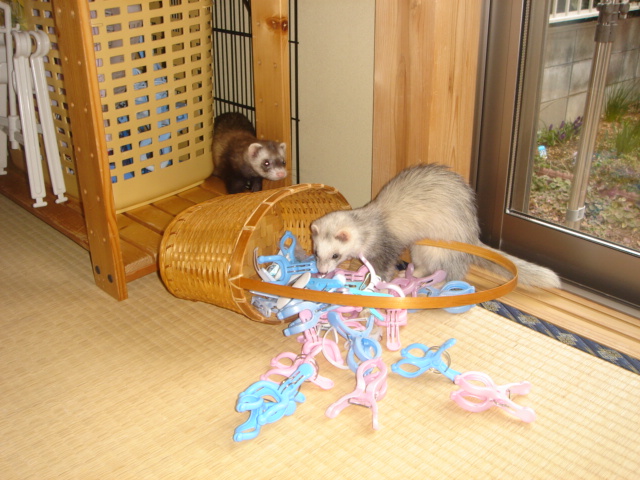 こんばんは。 miiです。今日は午前中、雷が鳴ったんですよ!!!!雨と風と、荒れ模様の1日かと覚悟しましたが、昼頃から、急に好天に恵まれて、桜のイベント会場も大賑わい今日はバイト、パートもいつもより多く出勤だったので、レジはなるべく新人さんにお任せして、(5ヶ月経った私はもう新人ではないので)今日は接客に専念。迷ってるお客様に、案外スムーズにワインを選んで差し上げることが出来て、「私もなかなかやるじゃない」なあんて、かなりの自己満足。私の親友、バイトのAちゃんは、勉強熱心で、しかも嬉しいことに老化気味の私の脳に、喝! を入れるべく、自分の覚えた新情報をテスト出題形式で、教えてくれ、私の知識の幅を広げてくれます。 Aちゃん、いつもいつもありがと。Aちゃんの期待!?に答えるべく、頑張って脳を鍛えなきゃ~~~そして、活用しないとね。 明日も頑張りますわ~~~~~~~~~~~~~~~~~~~~~~~~~~~~~~~~~~~~~~~~~ケージを覗くとやだ~~~、誰これ??新種のフェレット?????? かと思ったら、みるの頭。なのに、それ、ククの手じゃない?みるの手ヘンだよ「何よ! 大丈夫よ、ほら」ああ、良かった。みるの手は、やっぱりこうじゃなくっちゃね。でも、見事に合ってたなブログランキングに参加してます!! 日々の励みに、応援ポチッと ありがとうございます♪