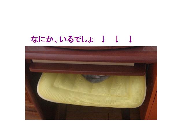 わたしの作業台、パソコンの椅子に、なにやら影が。。。ズームすると、 みるがちゃっかり。確かにこのマット。みるとククに使ってもらおうと買ってきたもの。でも、パソコンの椅子にサイズがぴったりだったので、何気に、乗せておいたから、私のがちゃっかり??妙にまったりしているので、みるの寝床に決定。みるとクク。いつもとても仲良しだけど、時々ククの重さに耐えかねて、みるだって、たまには一人で、居たいのかも。この場所、ククにはまだ気づかれてないし、 ね。