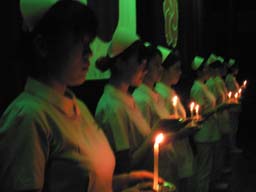 厳かに行われ 一人一人が頑張ってきた証が彼女たちのキャップとロウソクの灯