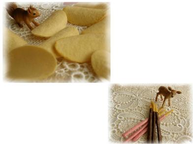 *macarons* 又また お久しぶりの更新になってしまいました ずいぶん前になりますが こちらで ご紹介した ガレットとカヌレ のお仲間の お菓子です いつもの フェルトで作ってます 成形はとっても簡単なのですが 色選びにすごく悩みました おいしそうでかわいい色悩んで悩んでこの4色にしました pointは 側面 ちよっと はみでた クリーム? がコダワリ?? これで完成?ツヤを出すかどうか うーーーーん悩みます。 このままでも***かわいい*** どうしよう。。。でも やっぱりツヤを出そう!! もう少し手を加えてみます フィナンシェマドレーヌも作りかけです=== うーーーん いつになったら仕上がるかな??? 真夏に焼き菓子は似合わないかも。。。 今月中には 仕上げたいな マイオークションブースをご覧ください**お時間ありましたら覗いてみて下さい