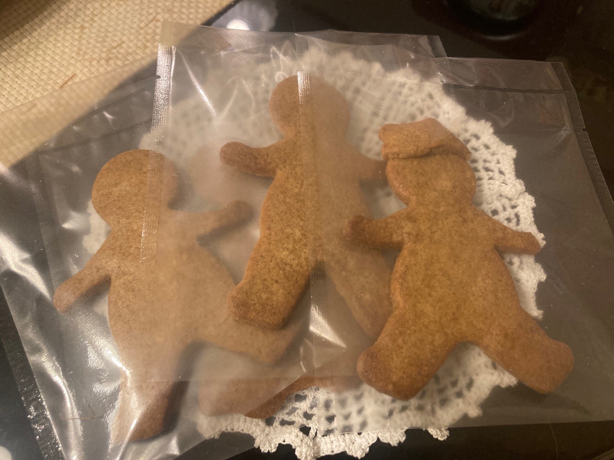 今年の初笑いは「うれシックスパック」でしたMisayaです。昨年の焼き収めはジンジャーブレッドビスケットでした。一昨年のクリスマスはミンスパイとクリスマスプディングをちゃんと作ったのですが、昨年のクリスマスは英国展で買ったバッキンガムのフルーツケーキで済ませましたので、代わりにジンジャーブレッドビスケットを焼きました。一昨年は手の状態も考慮して簡単バージョンで作りましたが今回は従来のレシピで。このレシピで作れるまで手の状態がよくなったのは嬉しい。一応親戚とかが急に来ても渡せるように袋に入れましたが今のところ予定なしです。。(結局自分で食べちゃいそう…)このジンジャーブレッドビスケットもレパートリー化したいなぁと思いながらなかなか出来なかったのですが、今年はトライしてみようと思います。ちなみに、今年の初焼きは…なんとなく決めてます。焼いたらまたご報告☆