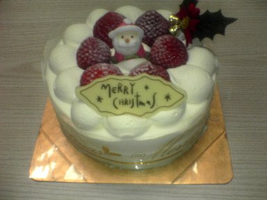 我が家の今年のクリスマスケーキです。鎌倉ニュージャーマンの生クリームデコレーション。ここのケーキはクリームが超うまい!!スポンジもキメ細やかでおいしい!! 4等分に切って、父母私の三人で一切れずつ食べましたが、あまりのおいしさに、さらに残った一切れを食べてしまいました…その日のうちに。 サンタさん…なかったことにして下さい…。