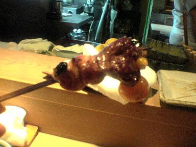 忘年会3日目…。家のごはんがそろそろ懐かしくなってきました。 で、今日は親友R子との忘年会。R子のリクエストは「焼き鳥が食べた~い!」焼き鳥なら、いつも行く三政でしょー!とも思ったのですが、月末に別件で行く予定があるので、あえて外しました。 R子が以前「東京Vシュラン」という番組で見た中目黒の焼き鳥屋に行こうよー!と。普段ほとんどテレビを見ない私が、もちろん知る由もなく。ネットで調べたら、ありました!鳥よしという焼き鳥屋さん! 今日は金曜だし、テレビにも出たとなれば、結構混んでることと思われます。R子には、18時半に先にお店に入っててもらうようにして、私も急いで中目黒へ。18時45分頃にお店に入ると、20席ほどのカウンターは満席!R子も最初に入ったときは満席で、ちょこっと待って座れたらしい。 ねじりハチマキをした粋なお兄ちゃんお姉ちゃん(一人だけ女性がいる!)が焼き鳥をどんどん焼いてくれます。ハツにレバー、あぁ~うまい!!こういうやわらか~いの食べちゃうと、もう一本60円くらいの安っちいのは食べられません! 「ここに来たらちょうちんとそぼろ丼は食べないとー!ってテレビで言ってたよ」とR子。ちょうちんって何だ~?? じゃじゃ~ん!!コレ↑がちょうちんです。ぶら下がってるのは黄身!黄身はキミでも、産卵直前の卵黄だとか。どれどれ…口の中に入れるとパチン!とはじけて濃厚な黄身がとろ~り!!うまーーーい♪シアワセ~☆ 他にも鳥わさとかギンナンとか。パクパク食べちゃいました☆すでにケッコーお腹いっぱいなのに、やっぱオススメのそぼろ丼も食べないと…と頑張りました。おいしい…けど…ぐるぢぃ…。 三政は庶民的な焼き鳥屋さんって感じだけど、鳥よしはそれよかちょっと上品かなー。でも、値段は決して高くはないですよ。二人でお腹いっぱい食べて9100円…食べすぎですかね?げぷー。