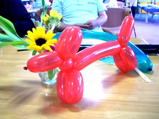 最近は、ブログの日記で極端に写真を紹介する事がなくなり、堅苦しい日記になってしまい、申し訳ありませんでした。昨日 久し振りにデイの風景の写真を撮って来ましたのでご覧下さい!★ 午後のレクにバルーンアートをしました ★皆さん、くびれを作るのに風船をねじって回し過ぎたのか、あっちこっちで風船が割れていましたよ!★ バルーンアートをしない人は ★☆ 将棋をしたり、パソコンをしたり ☆★ 犬の出来上がり ★☆ ダックスフンド? トイプードル? どっち!☆次回は、何を作るのかな?
