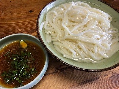 今日の昼は、暑いけど、ふと食べたくなって乾麺のうどんを茹でて釜揚げうどんにしました。