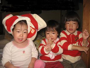 ミウの洋服を脱がせようとしたら、頭に引っかかってしまいました大笑い