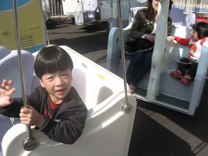 昨日の続きですミニ遊園地ではいろんな乗り物に乗りました二人乗りの物にはジョージは1人で乗りましたミウはマッキ~(甥っ子)と乗りました怖がるかなと思いましたが満面の笑みでした ミクは私と乗りました予想以上に喜んでいました そしてジョージの念願のメリーゴーランドですミクは1人で馬に乗れないと思ったら1人で乗ってしまい 私は1人で乗る羽目になりちょっぴり恥ずかしい事に そして、ミウはマッキ~と2人乗り ジョージは1人乗り恥ずかしかったがミクの成長ぶりを目の当たりに出来た瞬間でした
