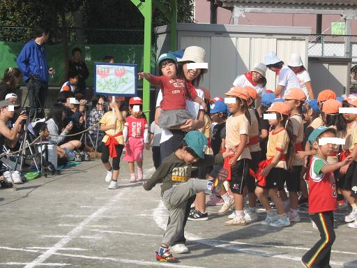 次はジョージ&ミウのクラスです『ひまわり組冒険に行こう!!』アニメ ワンピースの歌にのってマット運動をしたり鉄棒をして大きいバルーンを使って中に入ったり・・・色々チャレンジしてましたミウはバルーンから泣きだしてました 次はミク・ミウ・ジョージ全員『ヒノっ子ソング」ダンスですジョージ&ミウは奥の方にいたので写真が撮れませんでしたがミクのはバッチリ 競技はまだあります続きは明日アップします親ばかです~