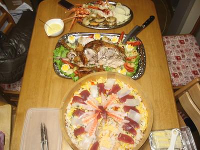 2月26日はミクの誕生日会をしました鳥1羽が無かったので鳥もも4枚を使って丸焼きもどきを作りました 出来上がりは丸焼きに似ていて笑えましたメニューとしては丸焼きもどき・伊勢海老のバターソースで・マッシュポテト・手作りピザ・卵サンド・なすと海老のフライ・ピーマンのポテト詰めフライ・ミネストローネ・しそと粗挽きウインナーのスパゲティでした ケーキは知人のYさんが2種類持って来てくださって 美味しかったですYさんありがとうございました