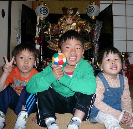 いよいよゴールデンウイーク最終日。今日は家で休養しようということで予定はなし。でも、いざ休養しようとしても子ども達がおとなしくいるはずがありません。ゆっくりしようと言いながらなぜかみんなそろって7時前には起きてくる・・・。朝からホームベーカリーで焼いた食パンを食べ、ゆっくりと朝ごはんができました。掃除や洗濯を済ませると、こどもの日も終わったことだし・・・ということで五月人形を収納しました。しまう前にパチリ!中途半端だった衣替えも整理できてスッキリ☆お昼からはゆうやんのお友達が遊びに来たので、私のフリータイムができました何か作ろうと材料を探していたら、ずっと前に買ったわらび粉があったのでわらび餅を作りました。夕方にはお友達にもらったハーブ苗を植えたり、メダカを採りに行ったり・・・なんだかのんびりとしたお休みです。夜にはまたまたパンを焼きました今回はベーコンを入れてみました。焼きたてパンを粗挽きコショウで食べるとかなり美味しい次は何パン???