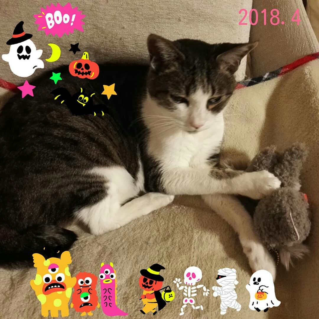 ハロウィン飾りのモモです🎃