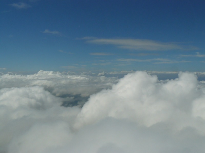 今日は、曇り時々雨予報の東京です。仕事で、日常的に公共交通機関で移動していますと、いろいろと気になることがあります。まず、電車に乗る際ですが、昔の大阪は、並んでいようがなかろうが、扉が開くや我先に殺到する文化?がありましたが、近年ではそんなことはなくなりました。37年前に東京に出てきた際、整列乗車のマナーの良さには感心しましたが、東京って、その後が悪いと思いました。何が悪いって、満員電車の殺伐とした雰囲気、人々の表情の暗さ、わざと押したり、押されたと文句を言う乗客の多いこと、この辺は、大阪の方がよいと思いました。それから、大阪、今でもわっと殺到して、出る方でもわっと出ていきますが、降車した後も、そのままわっと行きます。東京の乗客、降りる時はわっと押してくるくせに、降りたとたんにゆっくり歩いて後ろに迷惑をかける人が散見されるのです。今、盛んにエスカレーターは手すりをもって歩かないようにしましょうキャンペーンをやっていますが、あれって、元々のキャパシティーと乗降客の量を考えていないところが非現実的なのです。通勤客で混雑する朝夕の首都圏の駅を見れば一目瞭然で、エスカレーター左右とも歩いてもホームに人があふれますから、左側でも歩かずにはいられないのです。それから、「乗換案内」の功罪の一つと言えそうですが、降車駅の改札口に一番便利な車両に乗客が集まる傾向が年々高まってきたように思います。大阪人の私は、昔から一番便利な車両に乗っていましたが、近年、一つ手前の駅あたりで移動してくる若者が増えたのです。見ると、スマホを見ていたりしますから、なるほど「乗換案内」の仕業かと納得しました。ついでにスマホ、使うなとは言いませんが、ながらスマホはやめていただきたい。新橋駅で京浜東北線から降車する時に、目の前の男性がスマホ見ながら降りようとして隙間に転落しかけたことがあったのです。危険を察知した私が、後ろの乗客をブロックしたので、将棋倒しは避けられましたが、あれ普通に降りていたら、片足転落した男性の上に将棋倒しになって、下手したら大事故になっていただろうと思いました。まだまだいろいろありますが、また別の機会に。画像は、そんな下界とは無関係の雲の上です。