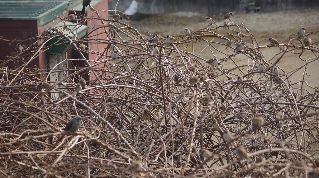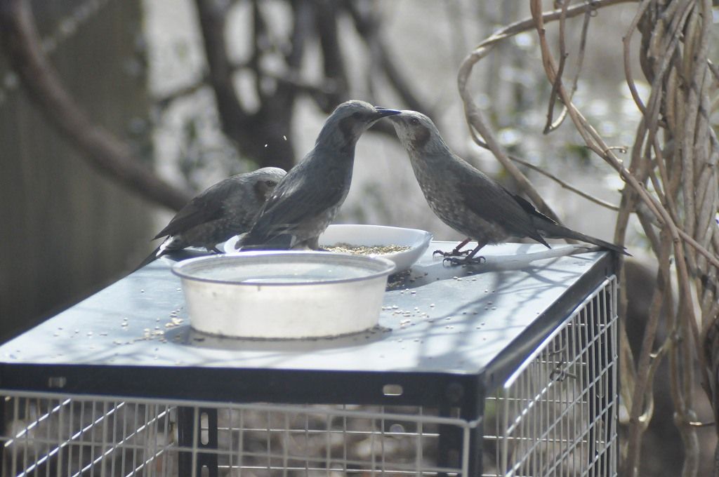 画像は、我が家の出す餌にたかっているメジロ、ヒヨドリ、シジュウカラ、スズメです。