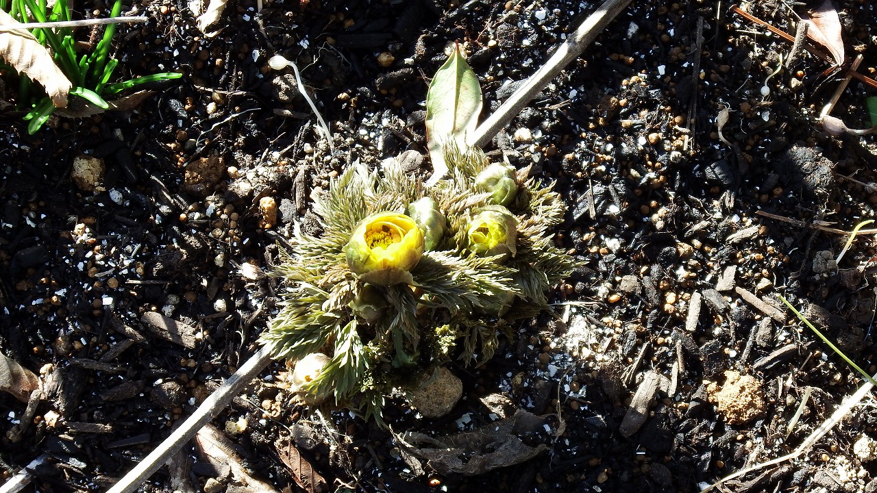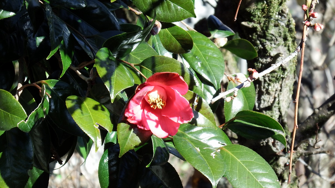 こちらは、いつの間にか生えたヤブツバキから咲いたお花です。