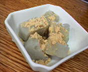 4.型に入れて冷やし、固まったらきな粉をかけていただく