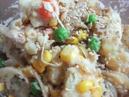 1のジャガイモ、3のタマネギとツナ、ミックスベジタブルも加えて和える