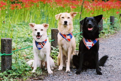 秩父羊山公園の芝桜と並んだ観光名所「日高市の巾着田」写真を現像してきました。うちのカメラはデジカメではないのぉなのでキャンプの写真の残りのフイルムを使い切ったっていう訳です駐車場代500円催事場は無料ですがお花のゾーンは200円いまの時期だけ川原でのBBQは禁止公式HPはこちら今回撮影は難航しました。何故かというと写真を撮っているとまわりに人だかりが出来て撮影会状態になってしまったからです。3匹それぞれがお得意のカメラ目線を違うカメラに向けてしまってオイオイ・・・。曼珠沙華の花は日陰の林の中に生えているのと天気が曇りだったので鮮やかな花の色が撮れていませんが良い記念になったと思います。