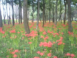 お彼岸の法要に母とハートローズクーちゃんを乗せて行ってきました。法要・法話の後、お墓掃除そして住職がお墓でお経さんをあげてくださいました。そのいでたちにクーちゃんが興味深々お墓でウルトラマンにでも会ったような驚きよう鳩が豆鉄砲って感じ?恐る恐る鼻でクンクン「おまえ、匂い嗅ぎ終わるまで、う・動くんじゃないぞ。」ビクッ壁に貼ってある選挙ポスターも裏側に回りこんで調査する癖を持つクーちゃんならではの行動着物姿がとても不思議の思えたのでしょうね姉家族と食事を済ませお寺の近所にある公園に向いました。武蔵丘陵森林公園です。母が歩けなくなると困るので車椅子を借りて交代で押しながらの森林浴うちの3WANはたまに遊びにきているのですが母は初めてだったらしくいい親孝行ができました。ハーブ園ハイビスカスが似合う男・・・ハートゾウさんの展望台??母とあと何年こうしてお出かけができるだろうか?クーちゃんの心臓のことも忘れてふと考えてしまいました。どっちも長生きしておくれ~競走です。ヨーイドン。ホントは巾着田に誘われたんだ。姉の家は巾着田の近所のニュータウン、地元の人にはタダ券が配られているそうだ。ガーン早く教えてよぉ来年は一緒に行くことにしようと思った。