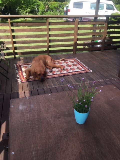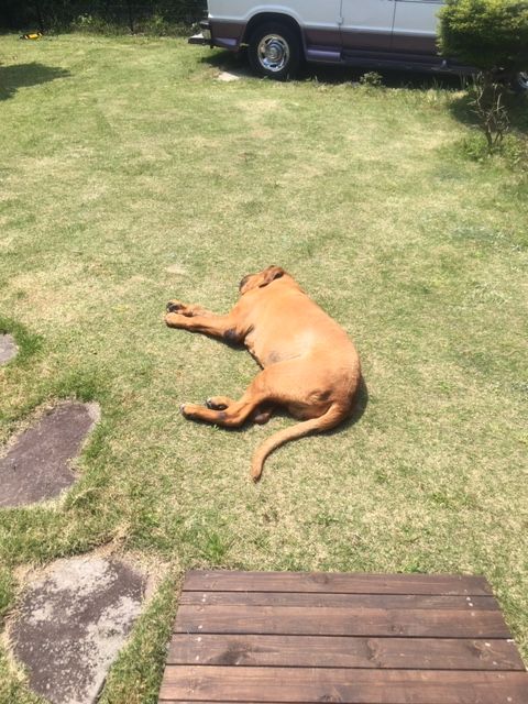 外の作業は一緒に見守ってくれますが暑いので一人先に入って涼んでるひゅんごです。