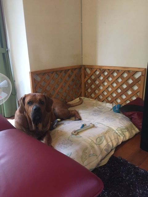 家の中のひゅんごの場所も壁が汚れるといけないのでガードを付けました。