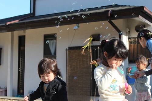 晴れて4月より2歳児クラスに進級したみんみん。 新しいお友達も4人加わり、毎日泣き声満載の新鮮なスタートです新年度といえば、担任発表。わたしも新しい担任の先生は誰になるんだろう・・・とドキドキでした。実はひよこ組時代、みんみんにはだーーーーーーーーい好きな先生がいたのです『こばやしさん』という先生で、登園するといつもこばやしさんの胸に飛び込み、ギューっとしてもらうことで安心して教室に溶け込んでいくのが日課。朝、こばやしさんがいない日は泣けてしまったり、入口で固まってしまったり。運動会の時もこばやしさんに抱っこされ、マラソン大会もこばやしさんと手をつなぎ。本当にみんみんにとっては大きな大きな存在でした。だから、進級にあたって『こばやしさんが一緒に持ち上がりできてくれるといいなぁ』と願っていたわたし。蓋を開けてみると・・・・残念ながらこばやしさんは担任からは外れ、ひよこ組から別の先生が2人持ち上がり、新しい先生が1人加わり、という体制でした。新学期が始まった日、大好きなこばやしさんの姿がないことに、少し戸惑っていた様子のみんみんでしたが、とりあえず朝の支度を始めました。そんなみんみんに『行ってくるね』と伝えバイバイしたのですが、出勤の車の中でみんみんは『こばやしさんがいつか来る』と思ってるんだろうな、あの小さい胸の奥でこばやしさんがいない寂しさに耐えてくんだろうな、と思ったら不覚にも涙がだから、どんだけ徳・・・・(以下自粛)でも、出会いがあれば別れがあるということで、親子ともども強くならねばねとか言ってるそばから、『明日は保育園で誰と遊ぶの?』というわたしの質問に『ばっちゃん!(こばやしさん!)』と答えるみんみんをみて、また目頭を熱くするかーちゃんなのでした人生なんてしゃぼん玉 @みんみん2012の悟り