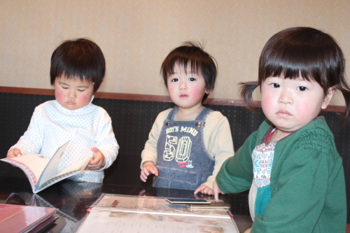 今日はまたもママ友と3組でランチに行ってきましたまさかの2週連続同じ店、2週連続個室5時間占領店側もデジャヴかと思うわっっっ!この日一緒に行ったお友達とは、わたしが仕事復帰する前は定期的に遊んでもらっていたのですが、復帰してからはなかなか会えず・・・集合したのは5ヶ月ぶりでしたもともとビッグだったあおくんは動くようになりスリムになって男っぷりを上げており、やんちゃ娘だったりおちゃんはさらに活発になって姐御っぷりに磨きをかけていました~8ヶ月前にタイムスリップみんな寝たきりだった頃からのお付き合い大きくなったなぁ~と成長をかみしめ、ママ同士のトークも止まらず・・・みんなにたくさん元気を分けてもらいましたそしてこの日、子供たちの成長が嬉しかったのともうひとつ、かーちゃんにとって大きな収穫がありました。それは『しつけ』のこと今まで眠らせてくれないみんみんに暴言を吐くことはあっても、(←オイ)しつけ的なお叱りはしたことがなかったわたし。『まだ何も理解できないだろーな』っていうのと、大仏のように動けないみんみんで、危ないこともすることがなかったっていうので、『叱る』ということがありませんでした。だから、あおくんママがテーブルに登ろうとしたあおくんに『登らない!』と強めの口調で言って、更にそれに従うあおくんをみて、『スゲーーーー』といたく感動したのでしたそして、素直というか単純というか・・・帰宅後から急に『そういうことしないのっ』だの、『座って食べなさい』だの、みんみんにしてみたら『急になんやねん』ですが、頑張ってしつけというものを始めたかーちゃんいろいろな情報や刺激を与えてくれて、ママ友って本当に大事な存在だなっと再認識しました~