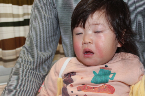 先週、木曜日仕事中に保育園から電話『お昼寝から起きたら、みんちゃん熱が38.4℃あって・・・』ここんとこ季節外れにインフルエンザが流行っていたひよこ組。インフルキタ━━━━━━Σヾ(゚Д゚)ノ━━━━━━!!!!!!!とりあえずばばちゃんに迎えに行ってもらうことに。病院にも連れて行ってもらったけど、まだ検査してもインフルかどうかは判断できないとのこと。定時を終え、急いで帰ると食欲もなく真っ赤な顔でフゥフゥ言っているみんみん。とりあえず出された薬を飲ませ、冷やしながら寝かすことにしたのですが。でも、、、寝てもしばらくすると『いやーいやー』とうなされて、また抱っこ。その繰り返しで、深夜0時過ぎに座薬を入れ、そこから5時間ほど寝てくれました。翌朝、またばばちゃんが迎えに来てくれ、病院に連れて行ってくれました。わたしは出勤して、同僚に『看てなくていいの?』と言われましたが、完全に伝染ってる予感でいっぱいだったわたしは『自分がなったら休むからさー』などと返して、1日仕事をしてまいりました。そして、みんみんは検査の結果、やっぱり『インフルA型』でした。金曜日はほぼ1日中おんぶで過ごしたとのことで、、、ごめん&ありがとう ばばちゃん。熱は38度代に下がったり、上がったり。もう1度座薬を入れて、その日はあまりうなされずに眠りました。翌土曜日、すっきり起き、熱を計ると36.8℃。とりあえず熱が下がって一安心。 インフル初日death! しかし・・・元気になったみんみんとは裏腹になぜだかイジョーにだるいかーちゃん昼間は1人で遊ぶみんみんを横目に少し眠ってしまったくらい。そのダルさは日曜も続き、、、、午後についにダウン熱はずっと微熱で37度ちょいってとこだったんですが、18:00頃測ると39度越え・・・・あ、キタわやっぱり伝染してました。あんだけ飛沫して、伝染ってないわけないと思ったんだよとーちゃんがばばちゃんに電話し、みんみんはばばちゃんに避難していきました。みるみる熱は上がり、意識はモーロー。熱いのに寒い。あーインフルってこういうこと!?人生初インフル。ホントつらかった一時は熱が40.3℃まで上がってビビりました。翌日、病院に連れて行っていただき、そこで計った時も39.8℃もあり、ソッコー裏のベッドに連れて行かれ。。。でも、そっから診察までが長い長い・・・こっちは寒さで震えてるっつーのに。検査結果はやはり『インフルA型』・・・でしょーーねっ帰って必死で薬を飲み、爆睡。午後には少し熱がさがり、だいぶラクに。VIVAタミフル夜は少し食事もとれて、薬を飲んで就寝し、起きると熱が平熱になっていました。健康ってスバラシイ生まれて初めてのインフル経験でしたが、みんみんの辛さがわかってよかったのかも。あんな小さな身体で、あの辛さに耐えて、本当によくがんばりましたやっと寒い冬も終わりに近づき、病気におびえる日々も終わり・・・かな しかし、この怒涛のインフル襲来のなか、ピンピンしていたとーちゃんの強さって・・・完治したぜよ~