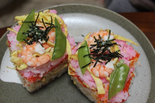 3月3日 みんみん生まれて2回目のひなまつりでした今年は土曜日で仕事もお休みだったので、きちんと準備してお祝いできました。ばーばも呼んで、ひなまつりパーティ 去年は食べられなかったちらし寿司をみんみんも一緒に食べられて、成長を実感。 力作!! 初めてのちらし寿司、えびをべーと出したり、いやいやの連発であまりお気に召さなかった様子。なんだよ、もう・・・ぶつぶつ・・・とーちゃんが買ってきてくれたひなケーキも、みんみんはスポンジを少し齧らせただけで、大人だけで美味しくいただいちゃいました。ごめんでも去年に比べて、一緒にお祝いした感たっぷりで、とても素敵なひなまつりが過ごせましたまた来年、さらにオンナに成長したみんみんとお祝いするのが楽しみ! また来年~ 翌日曜日、早く嫁に行ってほしいとーちゃんとかーちゃんはさっさとおひなさまにお暇していただいたのでした。 おまけのはなし。最近、からだとこころ、疲れ切っていたわたし。ひなまつりの準備をしつつ、夜のパーティに向けてみんみんには昼寝に入っていただきたかったのですが・・・寝ない夕方まで外出していたとーちゃんに『寝ないんだよっ』とイライラしながら報告。さらに日曜日、朝起きた時から『頭痛い~、腰痛い~』と最悪のテンション。そんな様子をみたとーちゃんから、最高のプレゼンツ『今日はみんみん見ていてあげるから、ひとりで出かけておいで』あんた、天使や・・・・そして更に、『軍資金もあげるから』とありがたーくいただき、午後からひとりでスーパー銭湯に出かけ、ゆーったりお風呂とサウナを満喫し、いただいた軍資金でマッサージ40分コース。至福のひとときをすごさせていただきました帰ったらカレーが作ってくれてあって・・・・感動かーちゃんにとって1日遅れのひな『祭り』でした本当にとーちゃんには感謝感謝。すっかりリフレッシュして、とーちゃんとみんみんにやさしくなれたのでした。この効果、1週間はもつでしょう・・・(笑)
