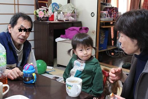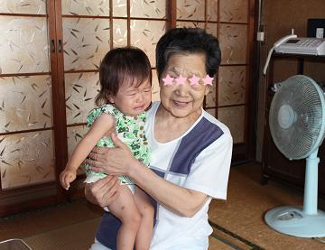 今日はとーちゃんとみんみん、2人で名古屋までおでかけ名古屋にはとーちゃんのばーちゃん、すなわちみんみんのひいばーちゃんがいるのです。6月に『行きは3人帰りは2人』で名古屋に行ったことはあったのですが、(向こうで解散して、かーちゃんはライブに行ったのだ)最初から最後まで2人だけでの遠出は初めてどうなることやら・・・と少し心配しながら、前日にお弁当やおやつの準備をしました。早め行動が好きなとーちゃんは、さっさと支度をし、かーちゃんが仕事に行くより早い時間に出発保育園に行くのと同じなのに、見送りながら何故か寂しくなりキュンとしてしまいました仕事中も気になって何度かメールをしたけど、返事はナッスィング・・・おいおいおい(アキラ中尾)、あの2人どうなっちゃったワケ~と思いながら帰宅すると、『泣いた泣いた、泣きっぱなしだったよ』と満身創痍のとーちゃんひいばーちゃんの家にいる間、とーちゃんから全く離れず、トイレもロクに行けなかったとのこと慣れない場所がイヤだったのか、ばばちゃん以上のお年寄りとあまり触れ合ったことがなくて怖かったのか。号泣の要因は分からないけど、とーちゃんの心はポッキリと折れてしまったようで、しばらく2人の遠出は望めなさそうデス ふえ・・・ 次はかーちゃんも一緒に行ってにこにこみんみんをひいばーちゃんに見せてあげなければ。いっぱいひいばーちゃんと触れ合って、人生の大先輩のお年寄を、大切にできる子に育っていただきたいですなんにせよ。初めての二人旅、お疲れ様でした とーちゃん&みんみんまたひとつ、芸を覚えたぜ(鼻の下が輝いてますヨ)