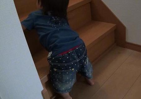 台風の影響か?暴風雨だった今日はばばちゃんと共に、らーちゃんの新しいおうちに遊びに行ってきました引っ越して1週間、まだまだダンボールやらいろんな荷物が片付いていなくても遊びに行くことを気持ち良く受け入れてくれて、洗濯物が干してあろうが、どんなに散らかっていようがどの部屋もためらいなく見せてくれる義妹。ホントに気持ちの良い性格で可愛いですらーちゃんの新しいおうちはすごーく広くて、遊ぶところがいっぱい『待て待て~』の追いかけっこもすぐにつかまる我が家とは違い、長~い廊下をたくさんハイハイすることができてみんみんもとっても楽しそうでしたそして向かう先は一軒家ならではの階段保育園の連絡ノートに『園の外階段を登る練習をしています』と先生からのメッセージで聞いてはいたのですが、家ではまだ登らせてみたことがありませんでした。階段の前でどうするんだろうと見守っていると・・・いっちょ登ったるか。。んしょ、んしょ・・・登ったぁ~しっかり練習の成果を見せてもらいましたそして・・・あいやー!(写真が臨場感満載です)落ちたぁ~さすが、我がムスメ。オチは忘れません。しかし、階段の楽しさを知ると、これから更に目が離せんくなるなぁかーちゃんも注意点がまたひとつ増え、母としての階段をひとつ登らされたようですうまい!座布団2枚! カーテンで盛り上がる2人