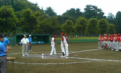 どーもタローっす!!引退試合してきました。試合結果は 9-1 勝利です!!また引退の日が延びた。途中、こいつが乱入した!!試合は一時中断!!まったくバカなんだから・・・。