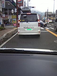 前を走る、あの車。後ろの窓、左隅、何か書いてある・・・。ナニナニ近づいてみよう~。なぞのお言葉。猿渓谷何だろう???気になる~~~しかも、アバウトな手作業な感じ?湘南ナンバーなんだけど、猿、どこに居る?