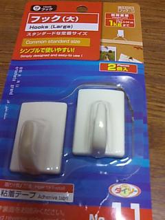 シンプルで使いやすい!スタンダードな定番サイズの、フック(大)です。ベランダのよしず1枚のために、買いました。実は、もう1枚は固定器具でかけてあるのですが、それを固定すると、網戸が開かないのです。開けたい窓の上に、フックをつけました。で、すぐに、よしずをかけようとしましたら、オットが「1日くらい放置した方がいいよ」と。そーなの?知らなかった。今まで、数々フックを貼り付けたけど、一日も待たなかったな~。速攻、かけて使ってたわ~。ふ~~ん、と言いながら、説明書きをみたら、ソウ書いてありました。信州は、涼しかったなぁ~~。
