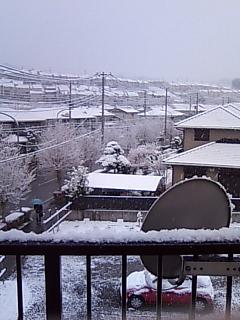 今朝7時前の映像です。まだ、降ってました。8時には、やんで、10時には、解けてしまいました。雪だるま、作る間もなく、残念。気分は一瞬、バンクーバー