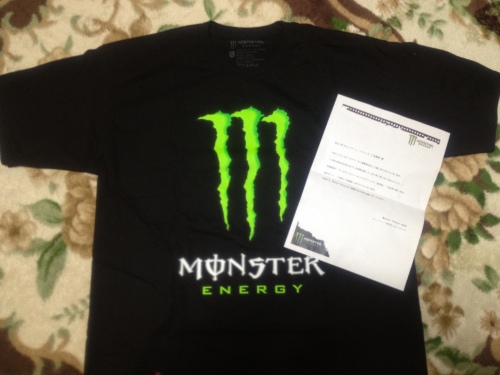 モンスターエナジーのMoto GPキャンペーンでCコースのTシャツが主人の社宅と実家と友人の家に届きました(^。^)