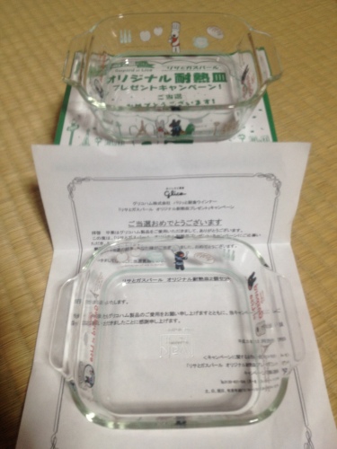グリコから「リサとガスパール オリジナル耐熱皿」が届きました(^-^)締め切りギリギリに何とか1枚応募出来たので良かったです。