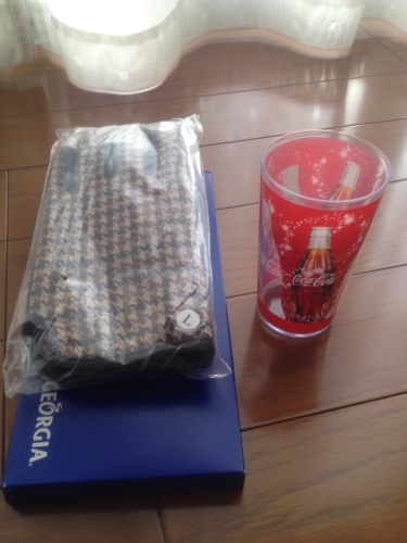 3つめのほっと手袋が届きました(^-^)コップはスーパーでペットボトルを買ったらもらえました。