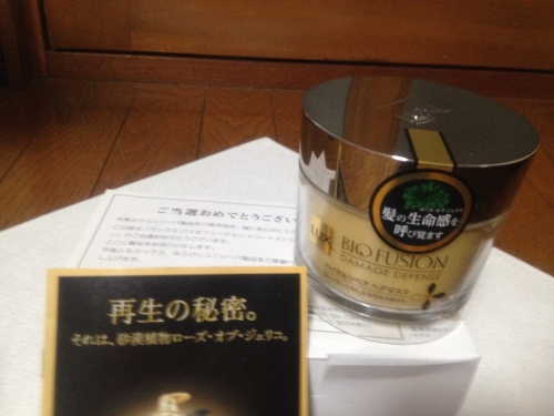 家にもヘアマスクが届いてました(^-^)購入した対象商品のバーコードをネットで応募するものでした。