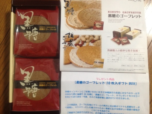 黒糖のゴーフレットが届きました。本賞は沖縄旅行でした(^_^;)
