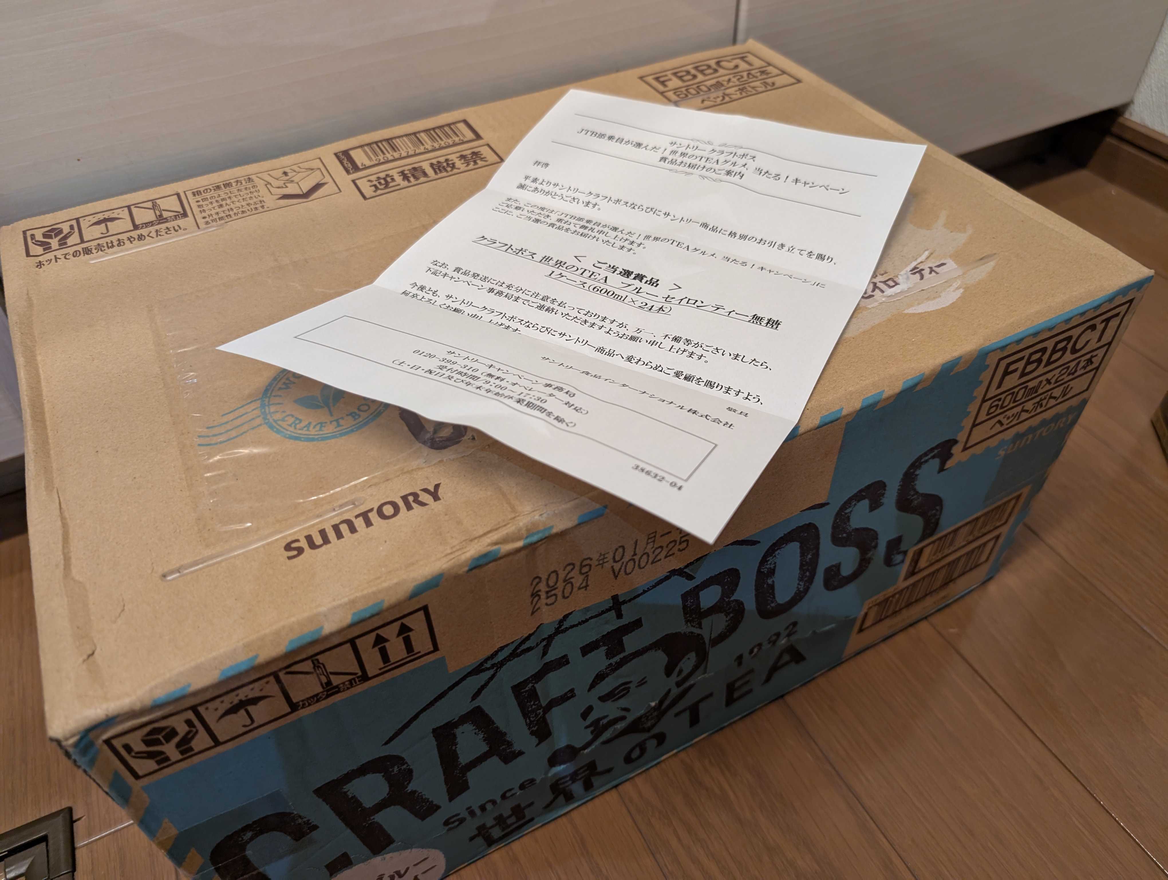 サントリーさんのクラフトボス世界のTEAのキャンペーンでブルーセイロンティー無糖1ケース当選しました🎉