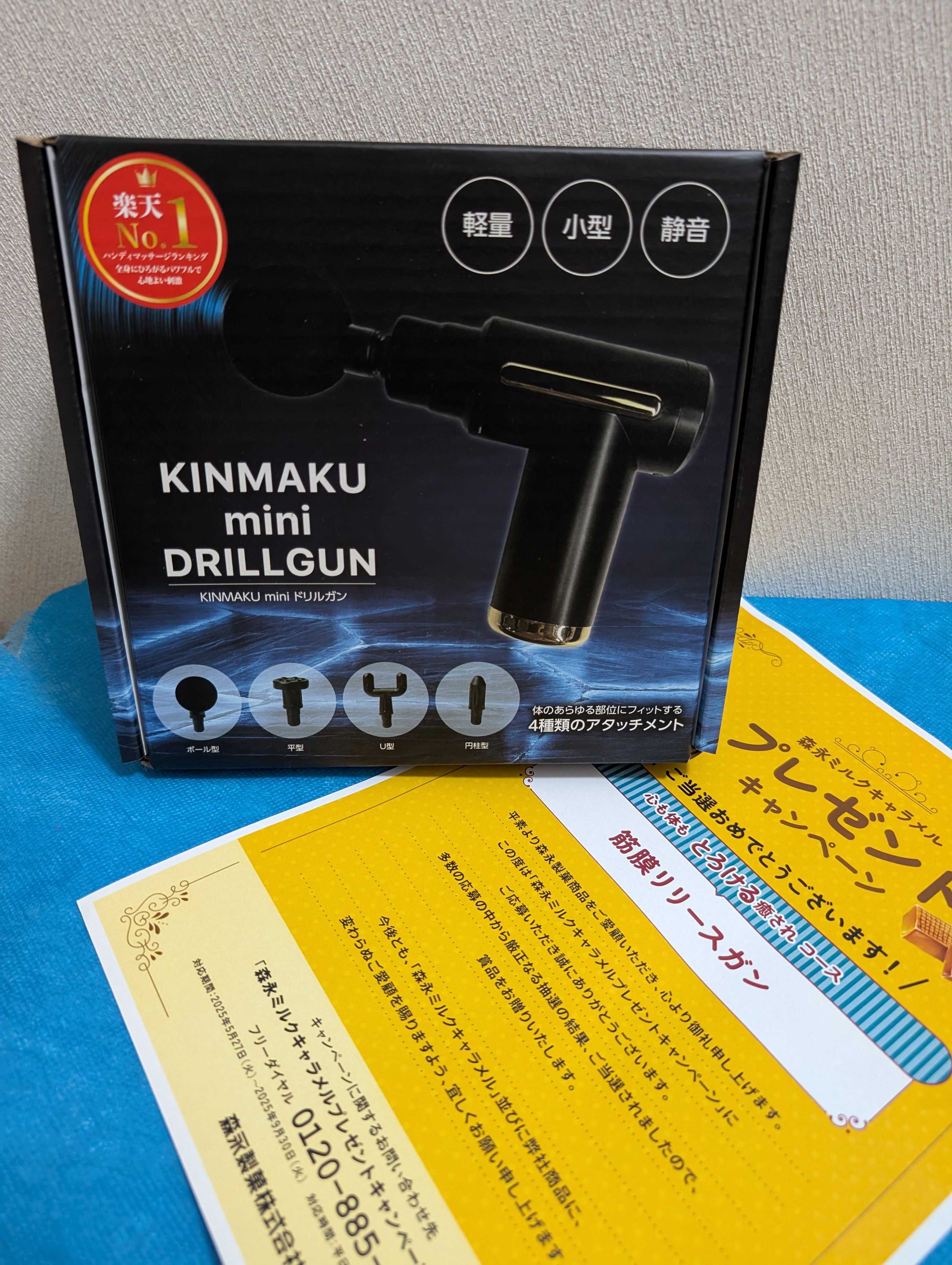 森永ミルクキャラメルプレゼントキャンペーンの「心も体もとろける癒されコース」で筋膜リリースガン当選しました🎉足がだるいのでふくらはぎや足の裏のマッサージに使いたいです😊