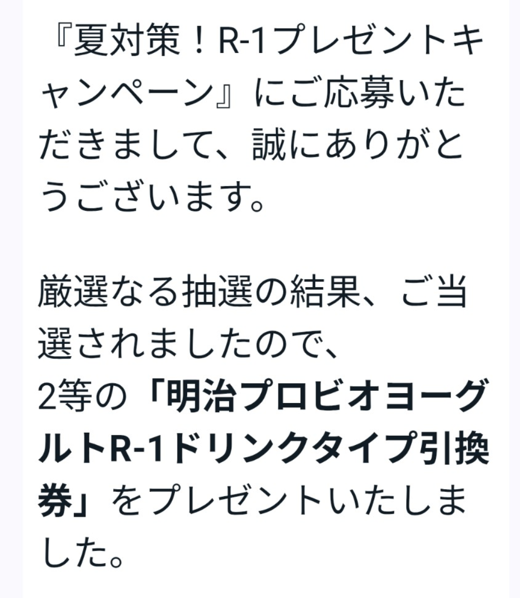 夏対策!R1プレゼントキャンペーンでR1ドリンクの引換えクーポンが当選しました🎉