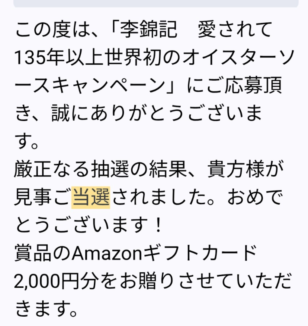 エスビーさんの李錦記のキャンペーンでアマゾンギフトカード当選しました🎉