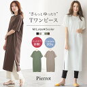 【24時間タイムセール!1,990円⇒送料無料1,390円】スリットTワンピース ☆ ロングTシャツ スリット ロング 膝下 半袖 五分袖 夏 Tシャツ ワンピース ロンT コットン 綿 レイヤード クルーネック レディース 夏 20代 30代 40代 ピエロ Pierrot MD