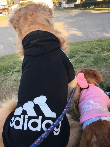 こんばんは。今年のGWも明日で終わりですが、今日の昼から次女が東京に戻りました。そして、明日は三女が乗馬に行った後、土浦のアパートに戻ります。三女の場合、来週も帰ってくるので、あまり寂しいとは思いませんが、次女の場合、次に帰ってくるのが8月と言っていたので、少し寂しいですね。さて、このGWにフリーマーケットに行ってきたのですが、次女と三女が購入したのが犬の服。昨日、帰ってきて早速、着せて散歩に行って、その時に撮影したのが上の写真。そして、散歩に行ったのが、近くの公園でその時に撮影したのが下の動画 三女の顔が映っていますが、三女は大きいゴールデン、次女は小さいダックスの面倒をよく見ていて、明日の夕方からはどちらもいないため、私と家内の二人で面倒を見ることになります