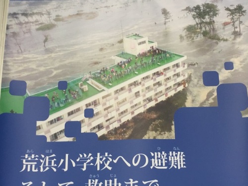 おはようございます。昨日、宮城県に行ってきました。まず、上の写真は3.11の当日、津波のため小学校の生徒が屋上に避難した写真です。この後、ヘリコプターで他の安全な場所に移動するのですが、夕方の5時から始まり全員が避難終了したのが3/12の朝5時だそうです。そして、この学校の周りには高台がないため、付近の住民も避難してきたのですが、多くの方は、津波は来ないと思い込んでいて、家に残ったり、洗濯物を取り込んでから避難するといった人が、津波に飲み込まれたそうです。こちらの写真は、津波が来た後の写真で、小学校の2階まで浸水しています。