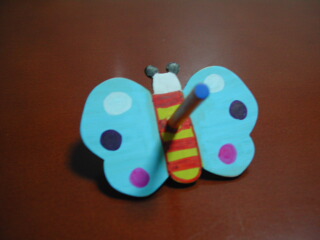今日は、午後から赤ちゃん広場へ行きました。去年のクリスマス会から一度も行ってなかった広場なので1月の予定表をもらおうと思ってd(^-^)月に一度、お楽しみ(オモチャ作りとか、クリスマス会とか)と、お誕生日会があるんだけど、予定が分からないからね。行くと・・・・今日がその「おたのしみ」でしたヽ(*'0'*)ツ ホントラッキーでした。今日は、コマ作り。といっても、木で出来たコマに色を塗るだけだけど。120円の費用で作ることが出来ました。普通のコマと、ちょうちょのコマの2種類があり、私が選んだのはちょうちょ。まわすと・・・綺麗な色に変身!!\(\o-) → (-o/) ゝ ヘーンシン! → \(〇¥〇)/カメーンライダー! ↑面白い絵文字発見(*≧m≦*)ププッみずは、マジックが気になるようで、何度もキャップをはずして遊んでました(/´△`\)ヤメテー!!今日は、なんとなく、よく泣くみずでした。お友達のオモチャが、頭に当たったんだけど(軽くね!)m(;∇;)mフエーン・・・私がトイレに行ってもm(;∇;)mフエーン・・・友達にオモチャを奪われてもm(;∇;)mフエーン・・・眠たかったみたい。帰りの自転車で絶対寝ると思ったんだけど我慢我慢(・・?)荷物を置いてベビーカーにチェンジし、スーパー行っても頑張ってるし・・・(・_・?)ドレミのオムツ598円だったから2つ買ったので荷物置きたかったのよね。スーパーから帰ってきて、晩御飯を食べる直前、ハイローチェアに座らせて待たせているとジュルルル ( ̄q ̄)zzzと寝ていました・・・。そうそう!今日、お年玉付き年賀葉書の当選をチェックしました。旦那様分と合わせて4枚切手シート当たっていました。私、100枚くらい年賀状来るの。会社の同期&先輩&後輩からが特に多いかな。だけど1枚でした。旦那様は半分くらいなのに3枚。今、みずが寝てるので、伊東家の食卓を見ながら書いてるんだけど「走り回る子供(1歳~3歳)を捕まえる方法」をやっていて(着替えとかの時にね)バスタオルでいないいない~!!とママがバスタオルに隠れたまま声をかけるとバスタオルに走ってきて、捕まえられるみたいです(*≧m≦*)ププッママは何処だ?ママと遊びたい!という心理が働くみたい。今日、試してみようっと。テレビでは100パーセント成功してたよ!